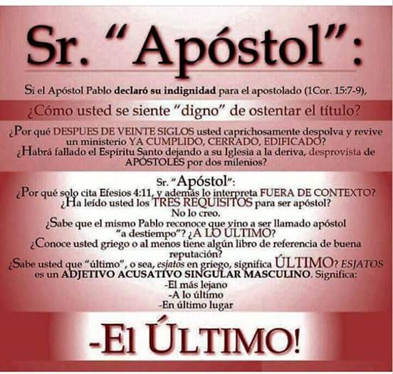 Como puedes ver los apostoles tenian el primer puesto en la iglesia y eso ellos buscan para asustar y explotar a las ovejas de Jesus con su falsa doctrina de prosperidad en la carne y su miseria espiritual.